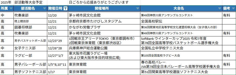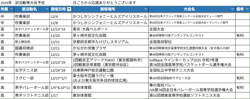 提出書類:志願票,調査書(所属中学校所定用紙)