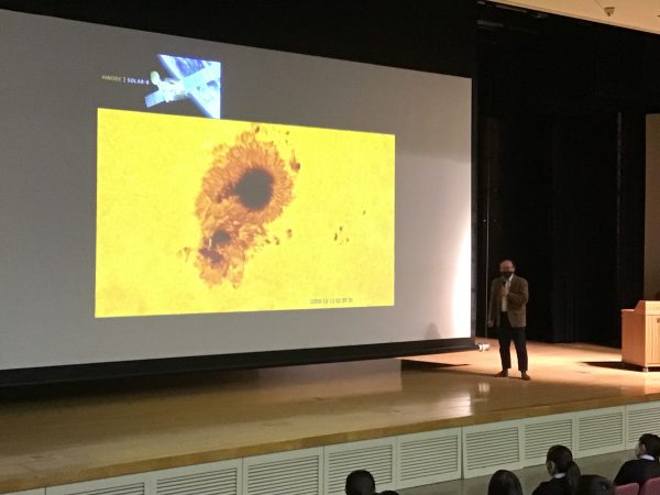 本日、国立天文台准教授の下条圭美先生にお越し頂き、中等部生対象に、タイトル「見えない太陽」をもとにお話し頂きました。