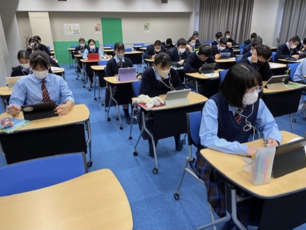 本日、中等部2年生が英語の授業でフィリピン現地スタッフの方とオンラインでつなぎ、英会話を実施しました。