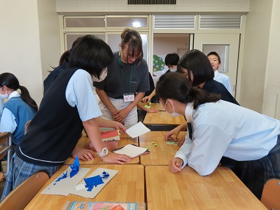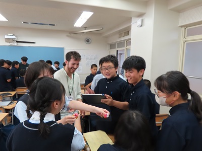 本日午前、学園のスクールメリットを活かし、東海大学に留学で来ている学生が本校に来校くださりました。留学生は中等部1年生対象に自分の国(デンマーク、スウェーデン、スロバキア、ドイツ、アイスランド、アメリカ、韓国、ポーランド、タイ)の歴史や文化を紹介してくれましたので、生徒たちは色々な国の歴史や文化を学ぶことができました。中等部1年生は御礼に留学生へ日本の伝統的な遊び(お手玉、けん玉、おはじき、かるたなど)を紹介しました。その他に、生徒たちは言葉の壁を越えてコミュニケ―ションをとり色々な国の留学生との触れ合いを楽しみました。