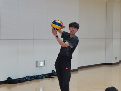 高校生は相手にボールを投げる時は横からではなく上から投げるように意識しながら投げたり、手首あたりにボールを当ててどのようにボールが飛んでいくか感触をつかむように練習をしていました。また、オーバーハンドパスやアンダーハンドパスの練習を楽しく真剣に行うことができました。
