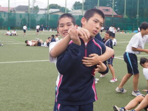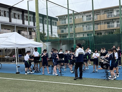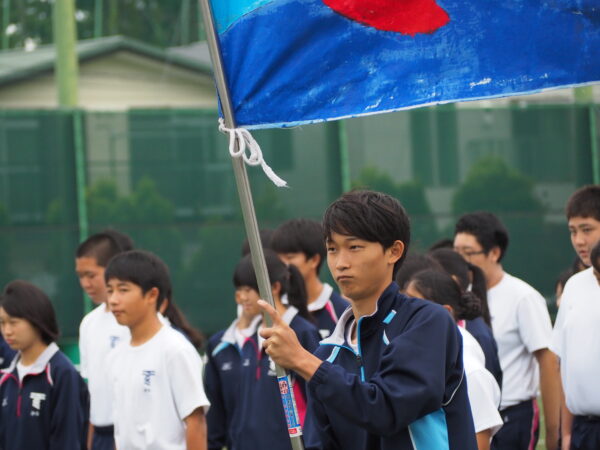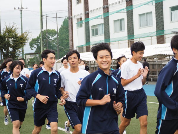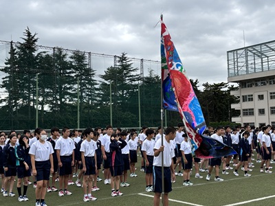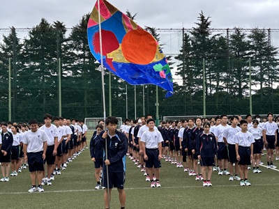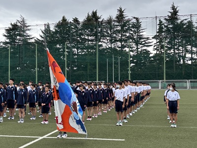 本日、中等部では体育祭に向けた予行を実施しました。台風の接近が心配されていましたが、幸い天候にも恵まれ、予定どおりグラウンドで行うことができました。