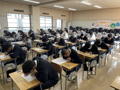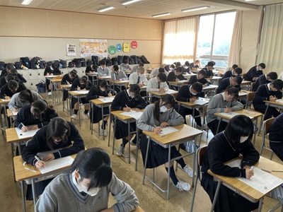 本日、中・高ともに後期中間A試験2日目を迎えました。中等部生全学年・社会、英語を、高1・数学Ⅰ、化学基礎、言語文化を、高2・歴史総合、古典特講を、高3・政治経済、数学C、英語コミュニケーションⅢ、生物、物理を実施しました。
