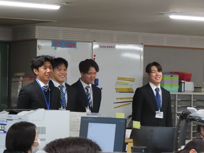 本日、後期教育実習が始まりました。朝礼で、本校卒業生の品田先生、仲亀先生、金子先生、多田隈先生から挨拶していただきました。