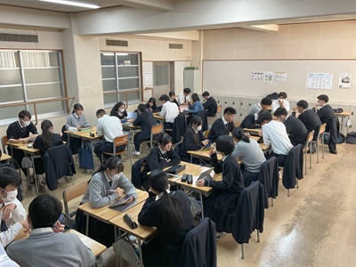 高校3年1組の「探究A」の授業では、生徒たちが実践的な「旅行プレゼンバトル」に挑みました。これは、生徒一人ひとりが架空の旅行代理店スタッフになりきり、独自の旅行プランを企画・提案する課題です。
