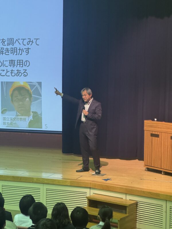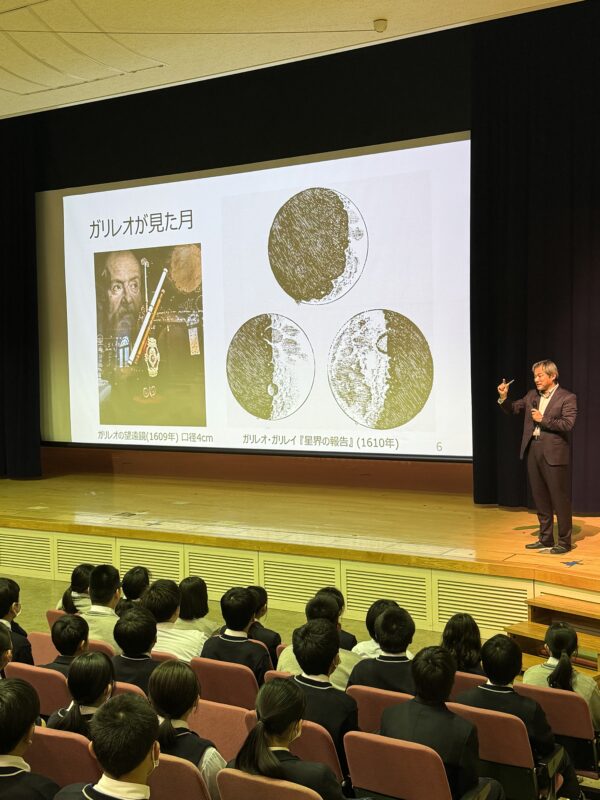 授業では、最新の観測技術やまだ見ぬ宇宙の謎について、情熱的かつ分かりやすく語っていただきました。生徒たちは壮大な宇宙の話に引き込まれ、目を輝かせて聞き入っていました。