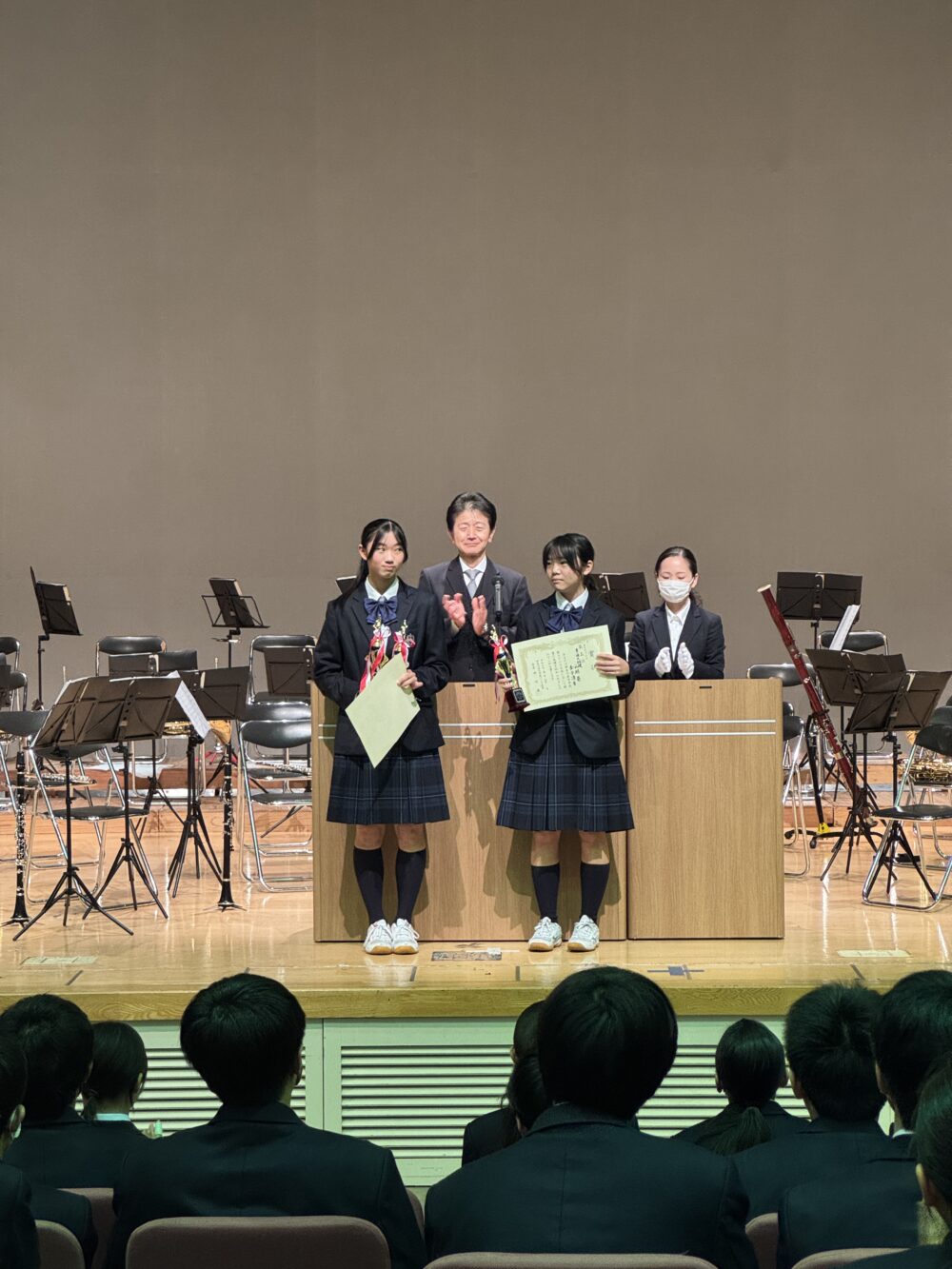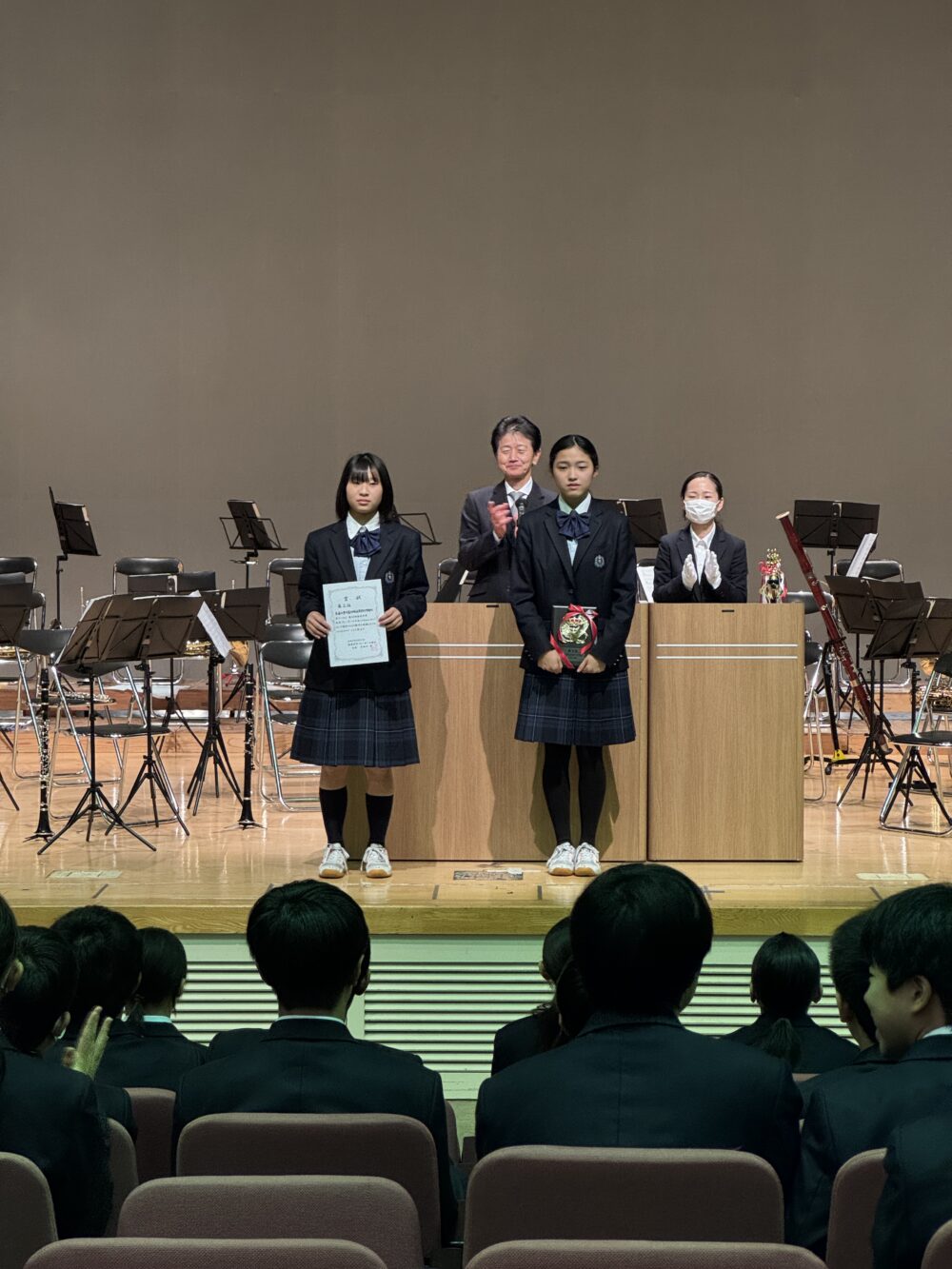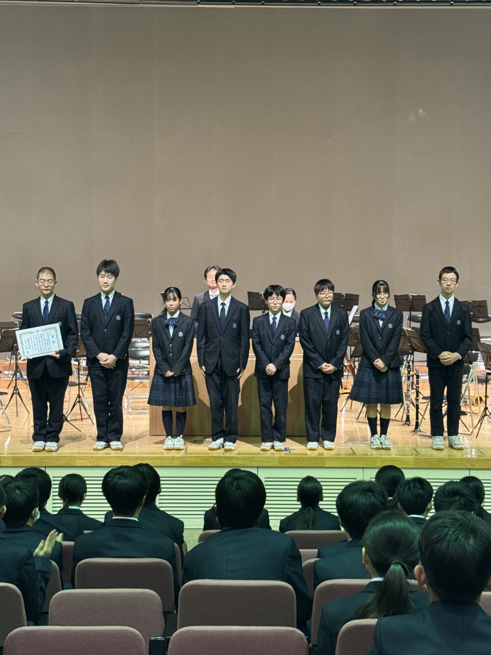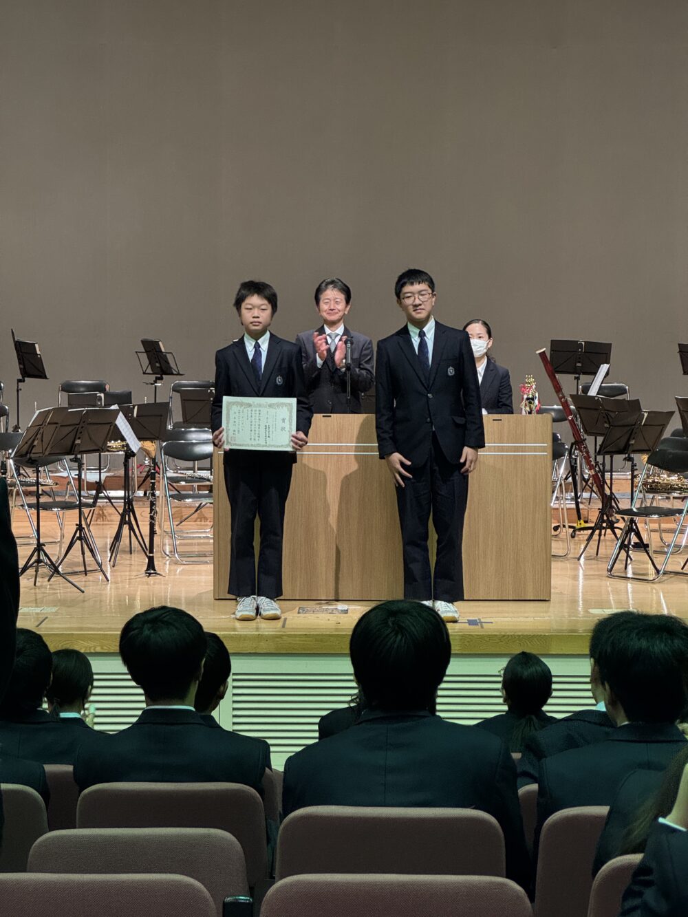 集会後には表彰式が執り行われ、吹奏楽部・ラグビー部・体操部・陸上部・男子バスケ部・女子バレー部・女子テニス部・学園オリンピックなど多くの部活動や生徒の活躍が披露されました。生徒たちの努力が実を結び、素晴らしい結果を残してくれたことを大変嬉しく思います。