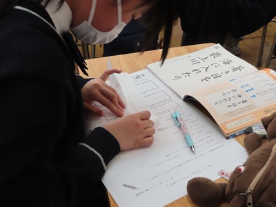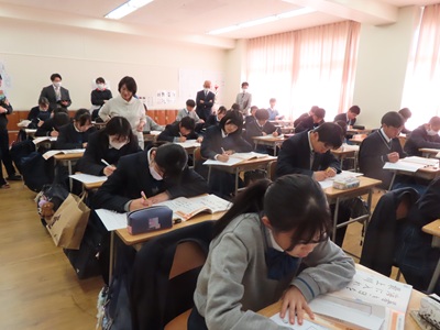 本日午前、中等部1年C組国語の授業で研究授業を実施しました。書写(硬筆)の内容で、前回、各自で自由に書いた字は、書き出し位置、上下左右のバランスなど整っているか確認して改めて清書しました。今日の授業を踏まえて来週から書き初めの授業を行います。
