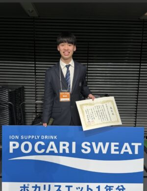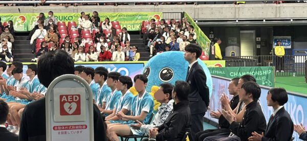 本当にありがとうございます。応援団長は本校バレーボール部2年・川口寅太選手です。表彰は代表で主将・根岸が参加しました。