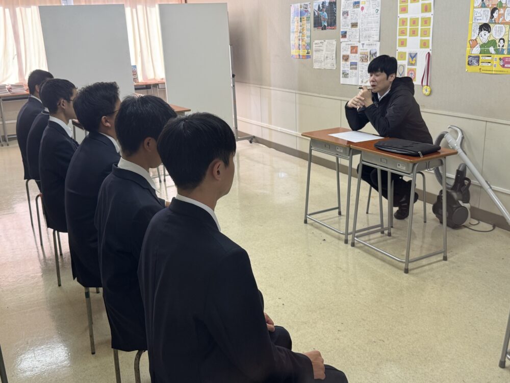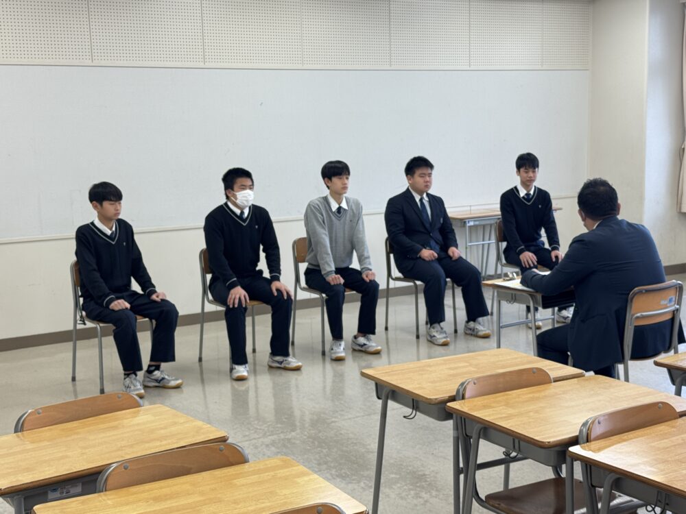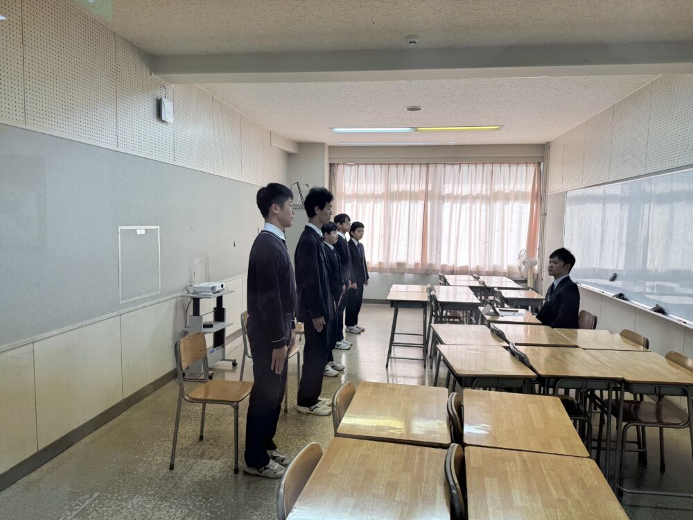 本日、1時間目のLHRでは、来週行われる入試の面接に向けて、面接練習を行いました。入退室の所作や姿勢、あいさつの仕方など、基本的なマナーを一つひとつ確認しながら、本番を想定した練習に取り組みました。生徒たちは最初は緊張した様子でしたが、自分の言葉でしっかりと受け答えができるようになってきました。本番に向けて、これまでの努力の成果を発揮してほしいと思います。