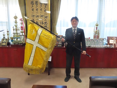 学園で校旗を新しくしていただきました