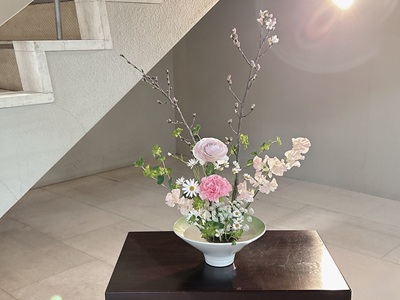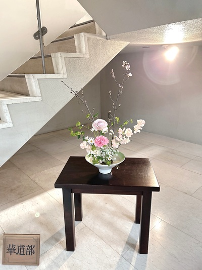 受験生の皆様に応援のエールを込めて、新部長が頑張って生けてくれました。
