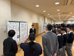 本校からは中2 井上悠翔 君と高2 山田敦樹 君が参加しました。井上君はポスターセッションとオーラルセッション、山田君はポスターセッションで発表しました。他の付属校は高校生が中心でしたが、井上君は高校生にも負けない素晴らしい発表をしました。
