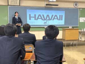 1月~2月の2か月間、ハワイ中期留学(SHIP)とニュージーランド中期留学(NZ)が行われ、参加した生徒たちが成果報告をしました。留学前は英語を話すことに不安だったようですが、留学を経験して、みんな自信をもって英語で素晴らしい発表をしてくれました。
