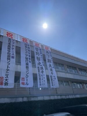 本校野球部OB会から激励の懸垂幕贈呈がありました。連覇を目指した活躍を祈念しています。