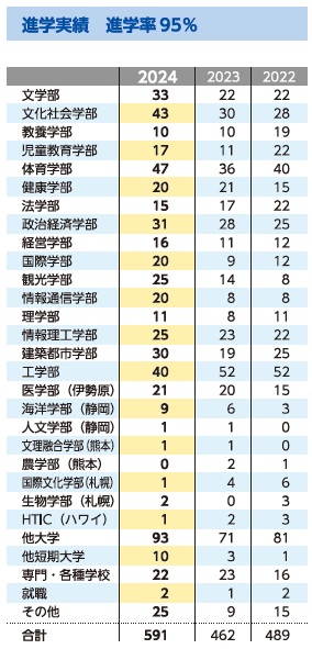 東海大学は1942年の学園創設以来、約80年間にわたり、時代の変化や要請に応えながら学びのフィールドを広げてきました。文系と理系の両分野にわたる学部・学科の設置、時代の先端を行く個性的な学科の新設など、生徒達の希望に応えられる学部学科があり、付属推薦入試における特別推薦制度により、卒業生の約80%が東海大学とHTIC(ハワイ東海)へ校長推薦で優先入学が認められています。なお、これらの付属推薦による進学者には、大学への入学金が半額免除となるというメリットもあります。